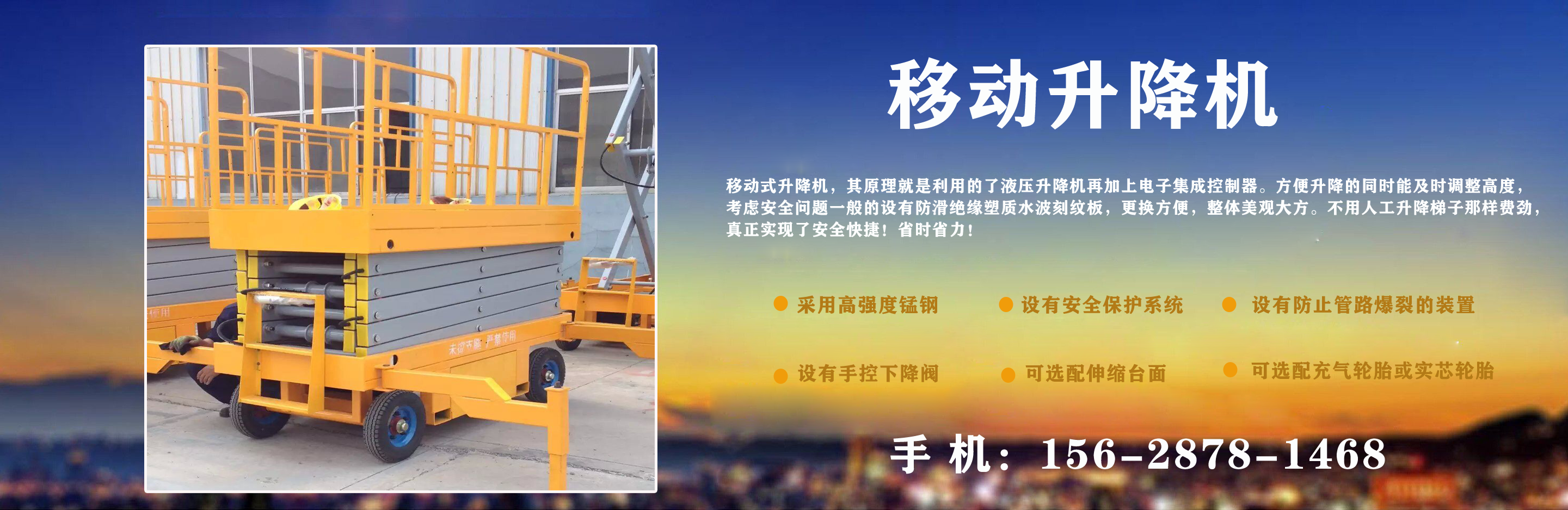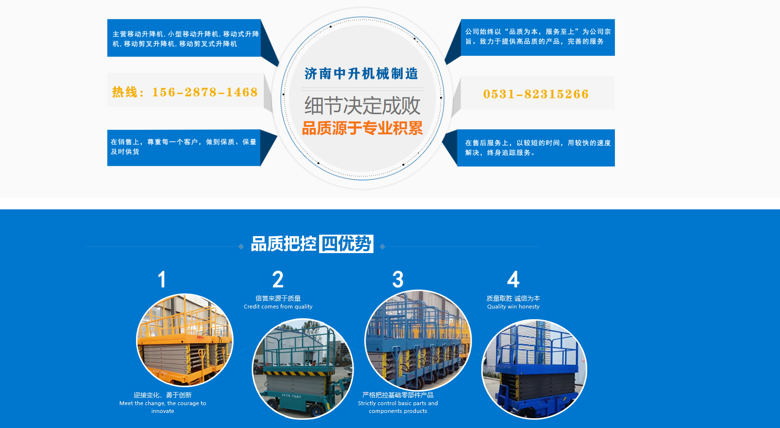 濟(jì)南中升機(jī)械制造有限公司主營(yíng)移動(dòng)升降機(jī),小型移動(dòng)升降機(jī),移動(dòng)式升降機(jī),移動(dòng)剪叉升降機(jī),移動(dòng)剪叉式升降機(jī)等產(chǎn)品,信譽(yù)良好,歡迎前來(lái)咨詢訂購(gòu)! 在銷(xiāo)售上,尊重每一個(gè)客戶,做到保質(zhì)、保量及時(shí)供貨;在售后服務(wù)上,以較短的時(shí)間,用較快的速度解決,終身追蹤服務(wù)。 公司始終以“品質(zhì)為本,服務(wù)至上”為公司宗旨。致力于提供高品質(zhì)的產(chǎn)品,完善的服務(wù),快捷的供貨,無(wú)論您身處何方,都能感受到我們的優(yōu)良服務(wù)。客戶至上,誠(chéng)信為本。 歡迎各界朋友來(lái)電,來(lái)函垂詢,選購(gòu)!...